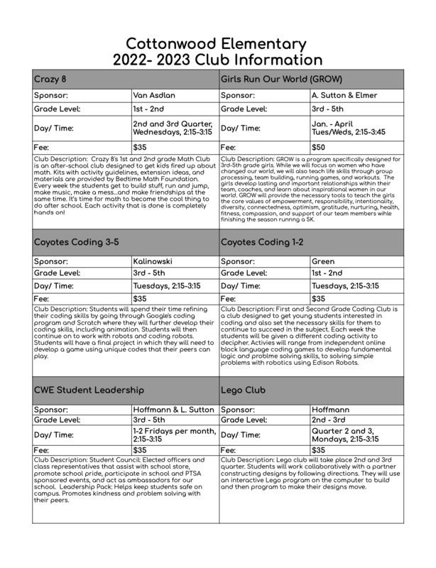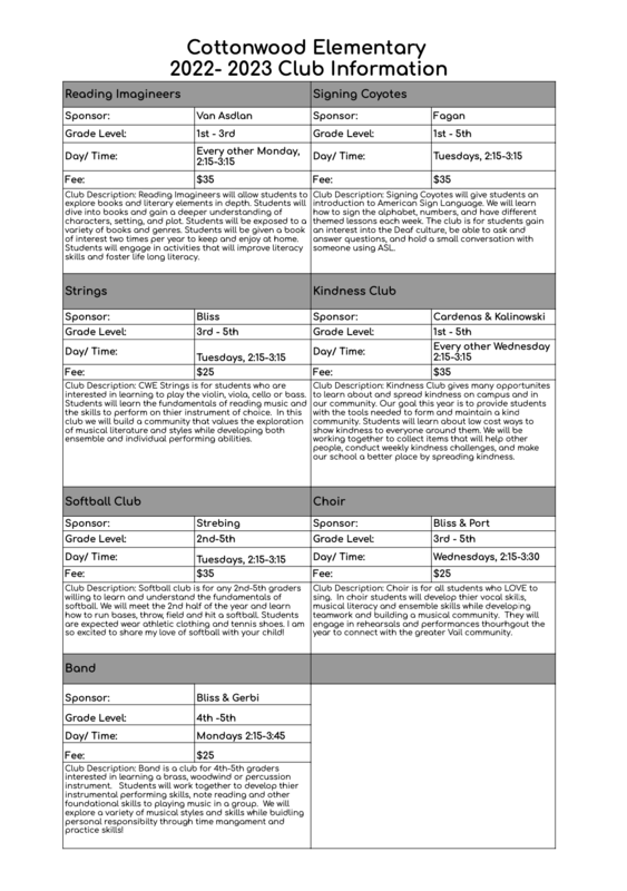 All of the clubs descriptions are here! Thank you! Reminder: Sign ups begin July 25th.